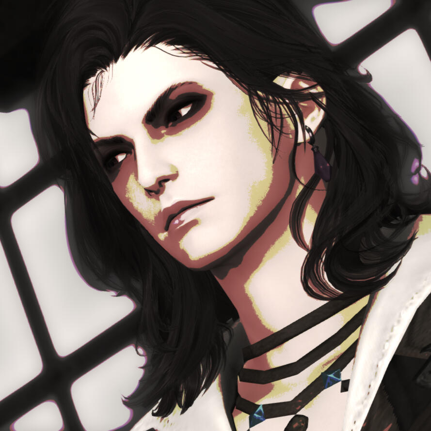Hey there! I'm not super active on social media nowadays so don't expect activity from me all the time. My Twitter and bsky are more of a place for rambling about OCs, XIV and maybe other games, keeping in touch with friends and occasionally stepping out of my comfort zone to meet other people. I do draw and post GPose stuff sometimes, but I am mostly here to shitpost lol. I doubt this carrd will ever be finished, so the best way to find out more about my OCs is to simply ask or keep an eye out for when I do answer wolqotds.Sometimes I speak about my other characters, but the one that I talk about the most is Judas, an OC I've had for about 12ish years. He also has his own original story away from XIV that I'm currently refining. Cillian is a much newer OC from his original universe and is very much still a WIP.Outside of XIV, I enjoy playing soulsborne and fighting games.